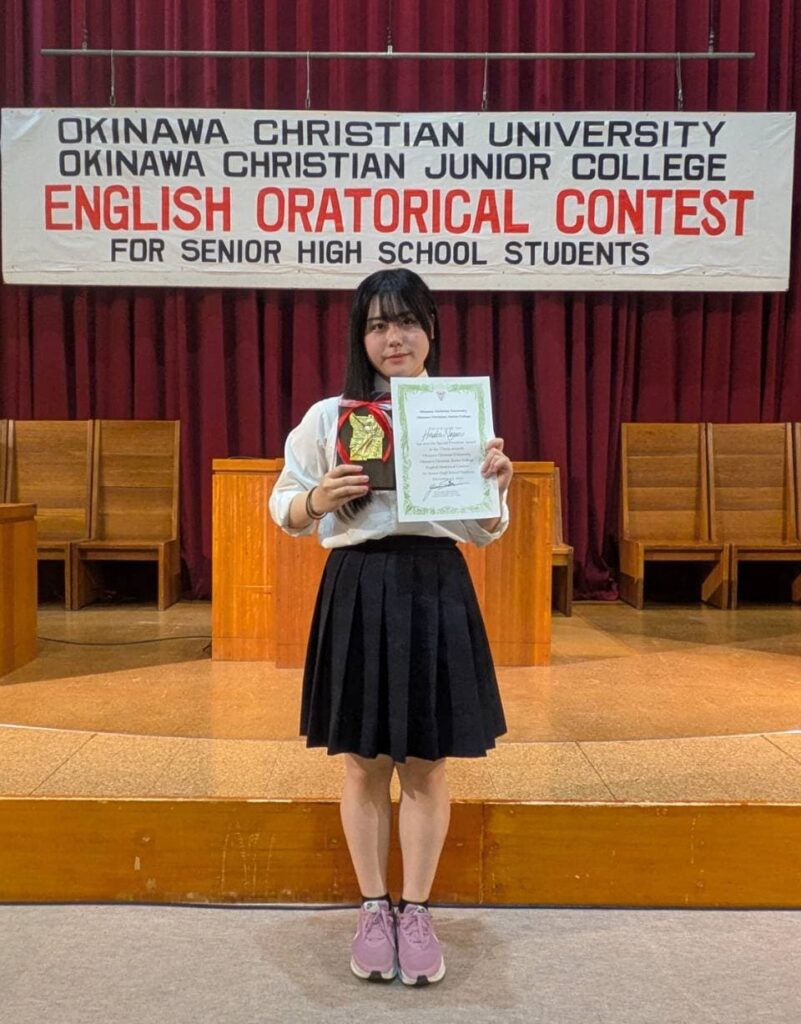 12月13日(土)キリスト教学院大学主催の第37回高校生英語弁論大会に、1年生の長野姫詩さんが出場し、県内の高校生12名が出場した中で見事に学長特別賞をいただきました!!