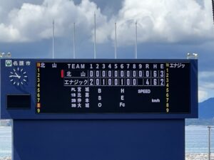 昨日に引き続き、4試合目となる宜野座高等学校との試合は、5対6でエナジックスポーツ高等学校が9回裏の逆転サヨナラ勝利という劇的な幕切れとなりました。
